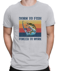 Vintage T Shirts Born To Fish Forced To Work Funny Fishing Lovers Crew Neck Short Sleeve Gifts