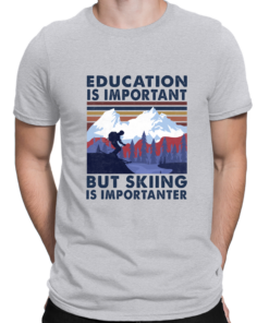 Vintage T Shirts Education Is Important But Skiing Is Importanter Funny Skiing Tees Crew Neck Short Sleeve Gifts