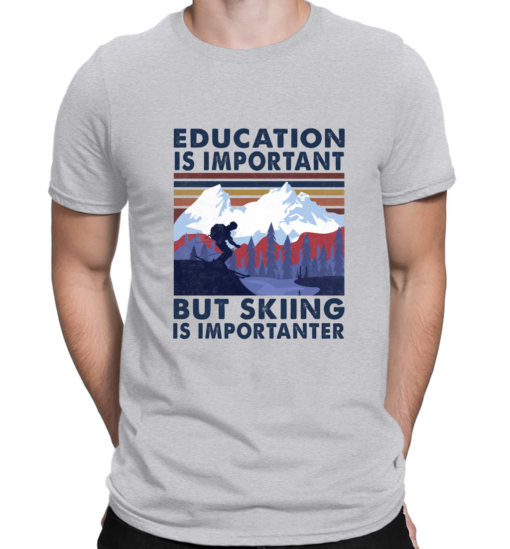 Vintage T Shirts Education Is Important But Skiing Is Importanter Funny Skiing Tees Crew Neck Short Sleeve Gifts